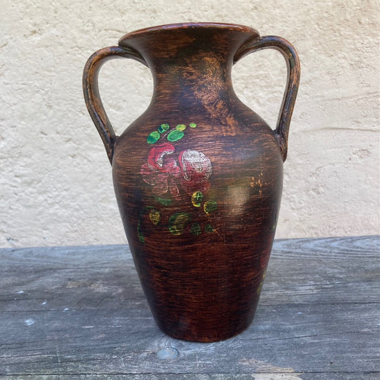 Hand Crafted Vintage Amphora Pottery Vase In Moody Autumnal Style With Floral Pattern