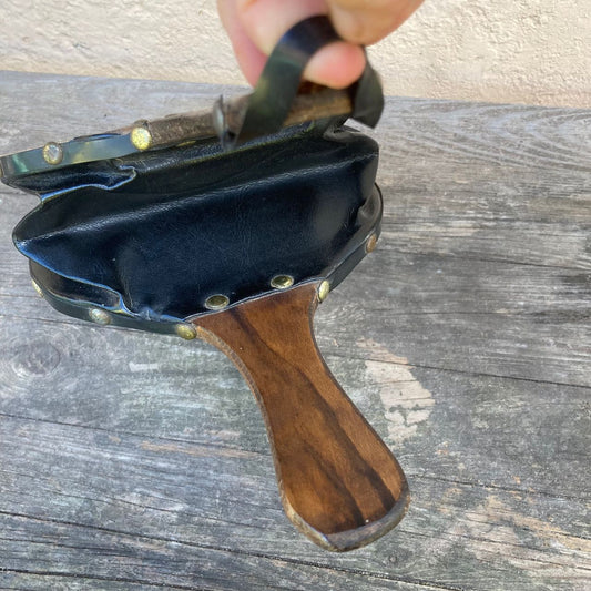 Wooden Vintage Bellows Blower With Leather, Copper Tip, Brass Hobnails, 1970s